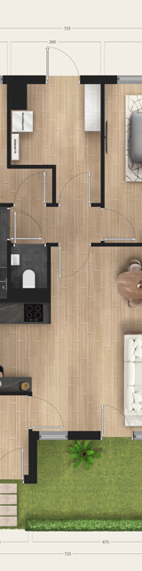 Met onze 2D stijlplattegronden krijg je een strakke, visueel aantrekkelijke weergave van de ruimte die functioneel én sfeervol is. Deze plattegronden zijn ideaal voor het presenteren van een woning of project aan potentiële kopers, huurders of investeerders. We zorgen ervoor dat de plattegrond overzichtelijk is en de belangrijkste kenmerken van de ruimte duidelijk worden weergegeven, zoals de indeling, verhoudingen en afmetingen. Het visuele aspect zorgt ervoor dat je project beter overkomt en gemakkelijker te begrijpen is, wat het verkoop- of verhuurproces versnelt. Het is de perfecte manier om jouw project te presenteren met een extra dosis stijl, zonder in te boeten op helderheid.